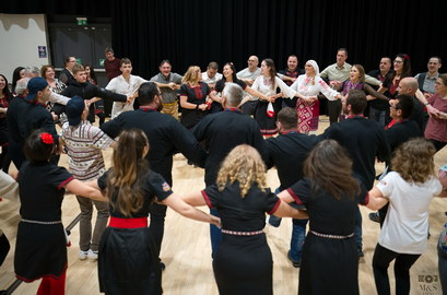 The hall was alive with the energy and rhythms of Bulgarian folk music, and the dances were led by our well-known folk dance clubs. Our friends from New Zealand, Japan, and Palestine added a unique flair to the evening by performing Bulgarian songs accompanied by the traditional tupan and tambura. The lively dances and festive spirit united everyone in the magic of the celebration.