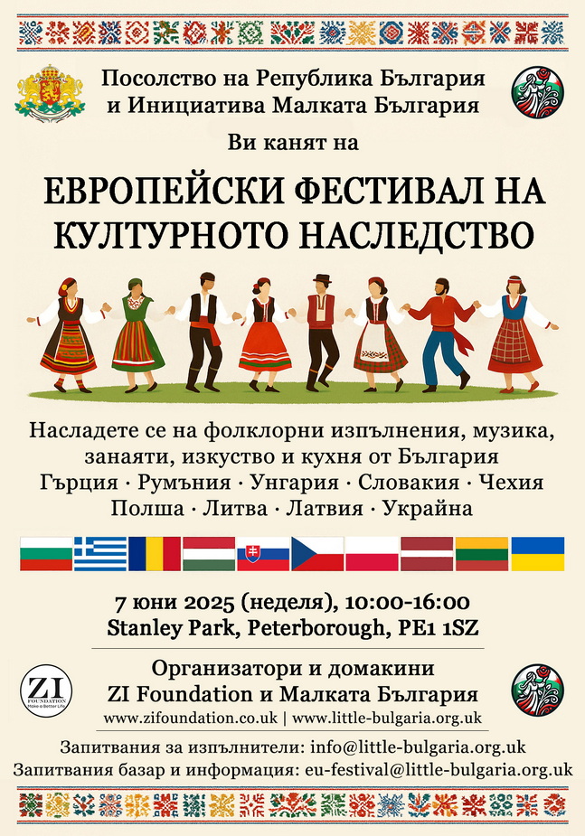 Благотворителни организации "Малката България" и "Фондация ZI" Ви канят на Европейски фестивал на културното наследство!